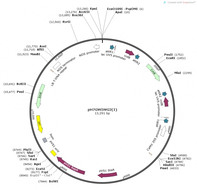 产品名称 | pH7GWIWG2(I) 载体 | ||||||||