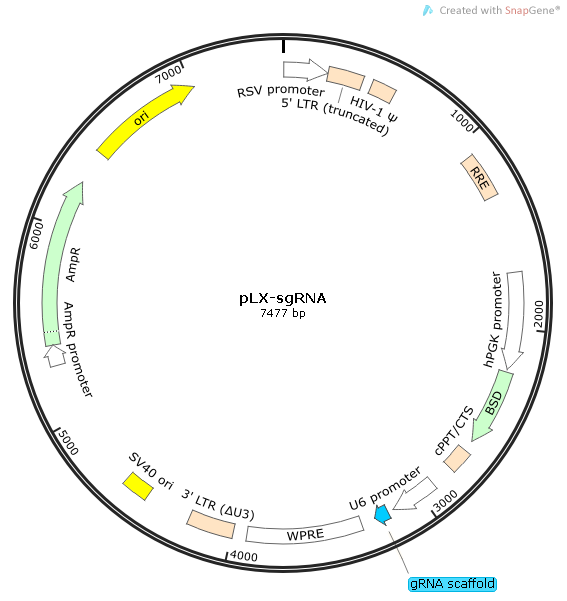 备注: Lentiviral expression of AAVS1-targeting sgRNA; insert can be replaced with custom sgRNA (see protocol)