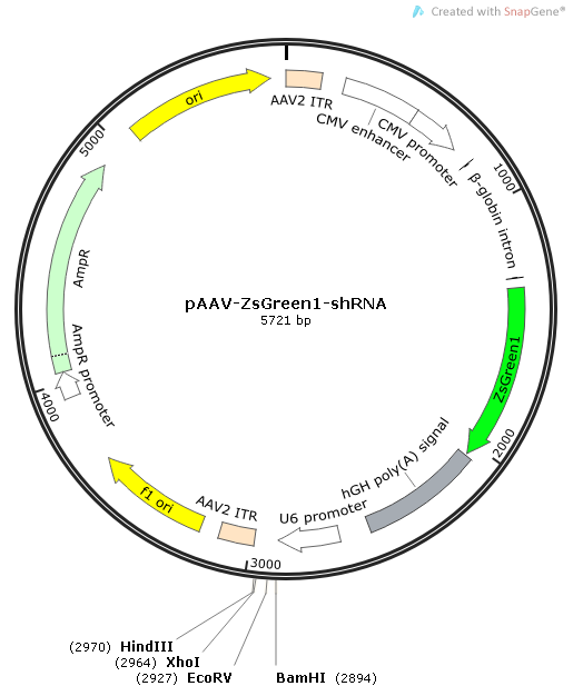 产品名称 | pAAV-ZsGreen1-shRNA 载体 | ||||||||||