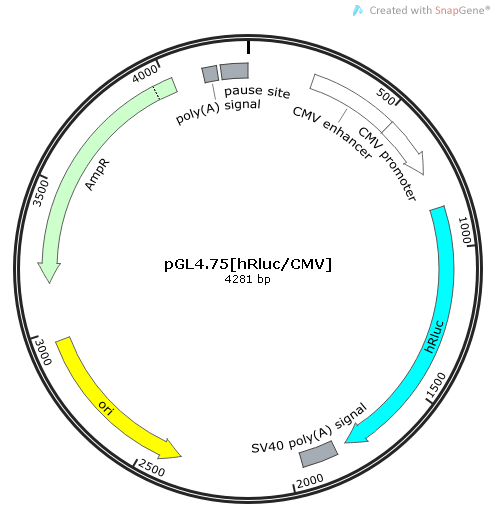 产品名称 pGL4.75[hRluc/CMV] 载体