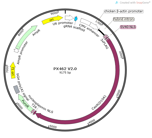 别名: pSpCas9(BB)-2A-Puro (PX462) V2.0