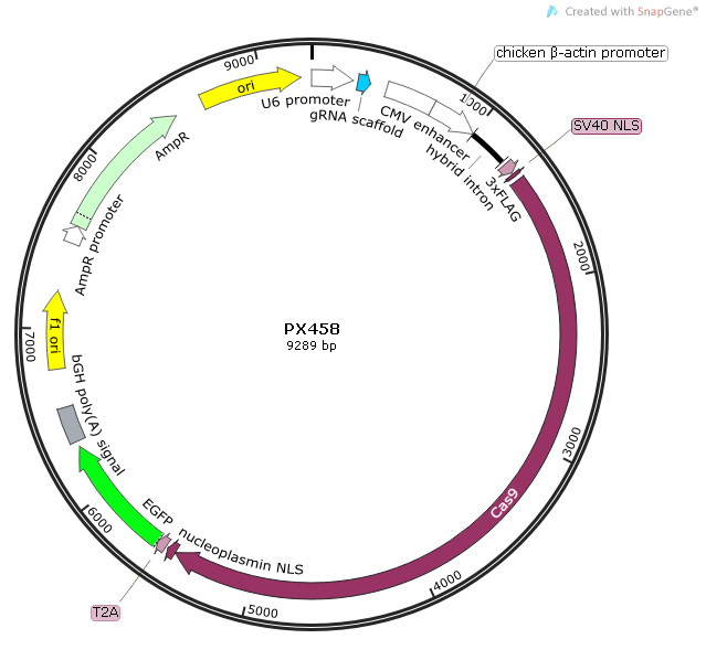 别名: pSpCas9(BB)-2A-GFP (PX458)
