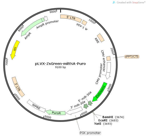 产品名称 | pLVX-ZsGreen-miRNA-Puro 载体 | ||||||||||||