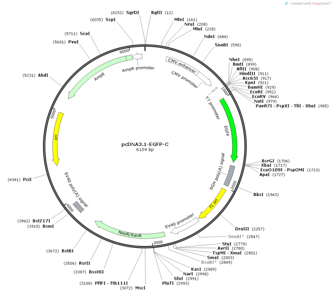 产品名称 | pcDNA3.1-EGFP-C 载体 | ||||||||||||||||||