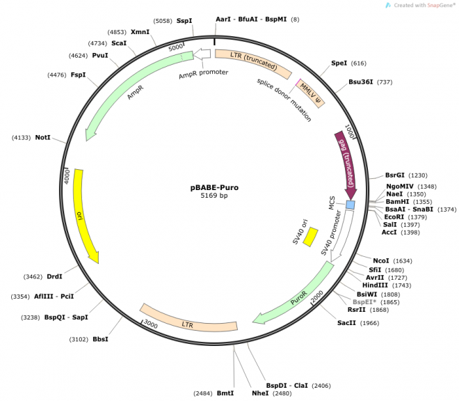 3 测序引物及序列: pBABE 3: ACCCTAACTGACACACATTCC