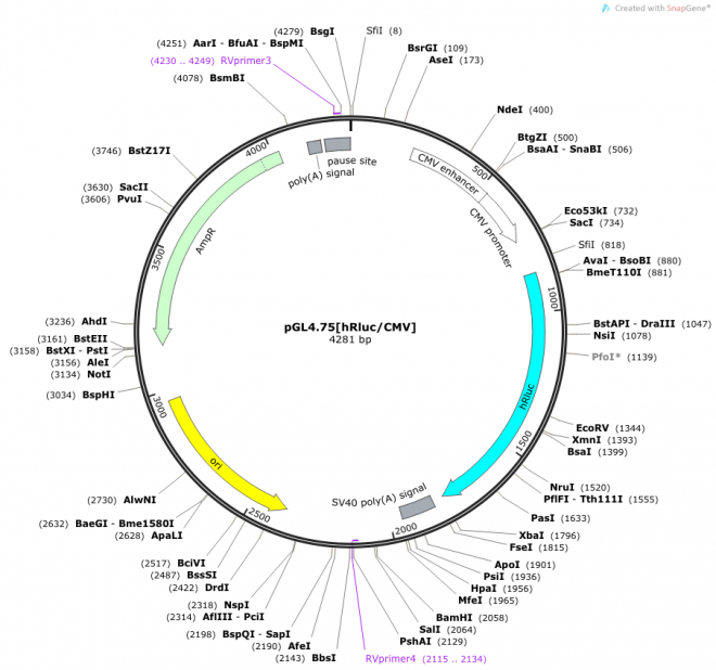 产品名称 pGL4.75[hRluc/CMV] 载体