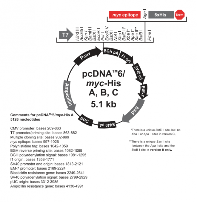 pcDNA6/myc-His B 载体