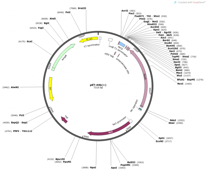 Both Nterm and Cterm His tags; Nterm thrombin cleavage site; Nterm enterokinase cleavage site; a,b,c vary by MCS.