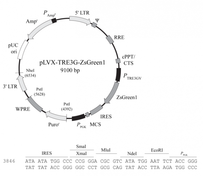 产品名称 pLVX-TRE3G-ZsGreen1 载体