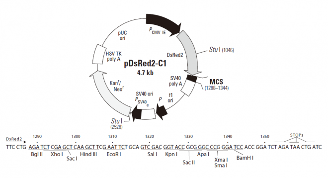 5 测序引物及序列: DsRed1-C: 5d[AGCTGGACATCACCTCCCACAACG]
